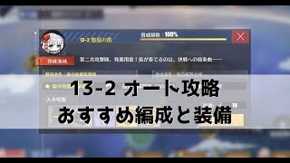 「13-2」をオートで攻略するための、おすすめ編成と装備をまとめました。
